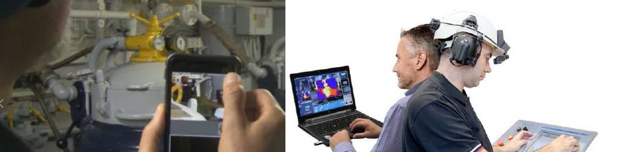 Dall’ufficio, il tecnico RINA Prime collegato in live streaming governa il sopralluogo: